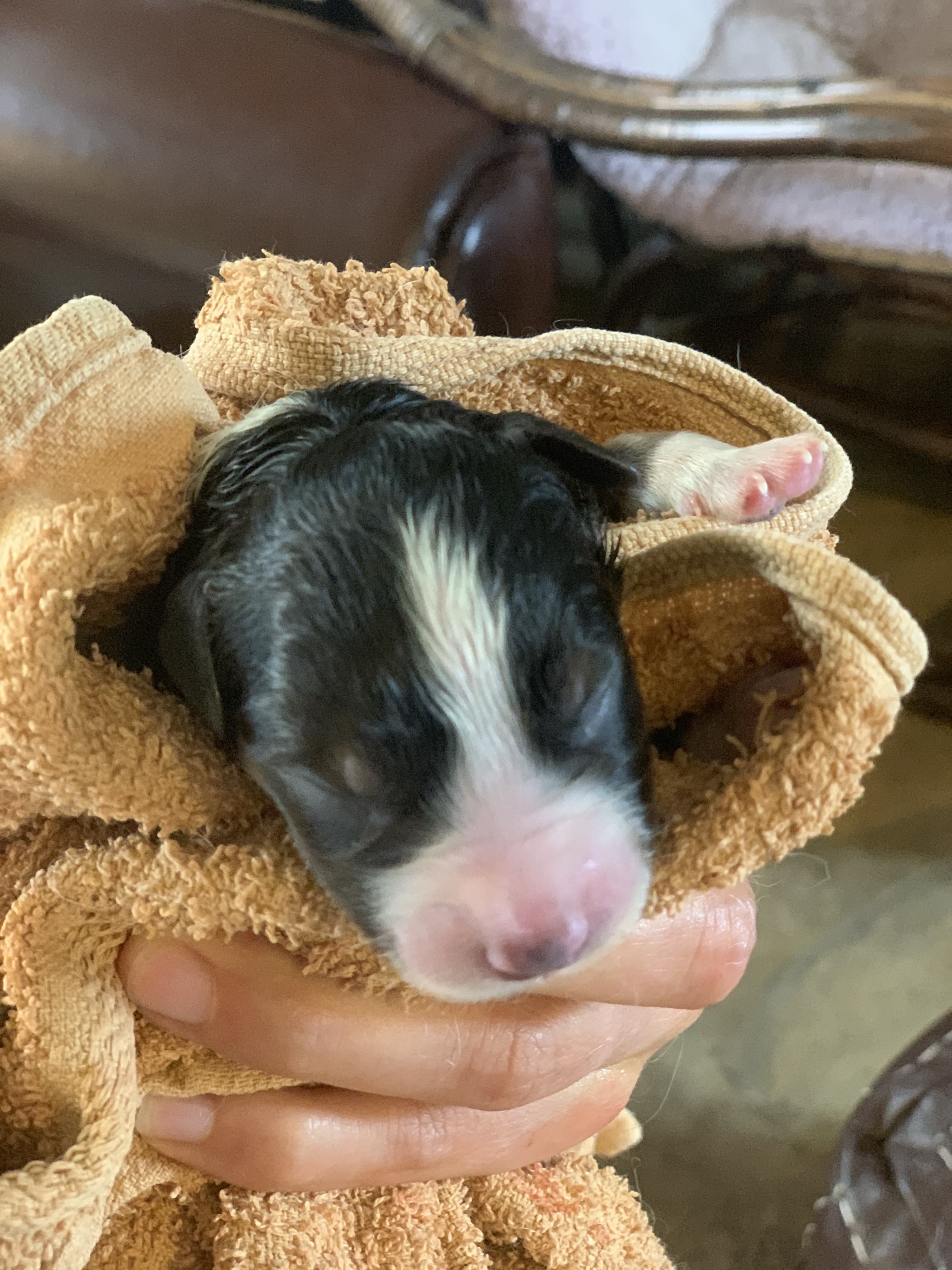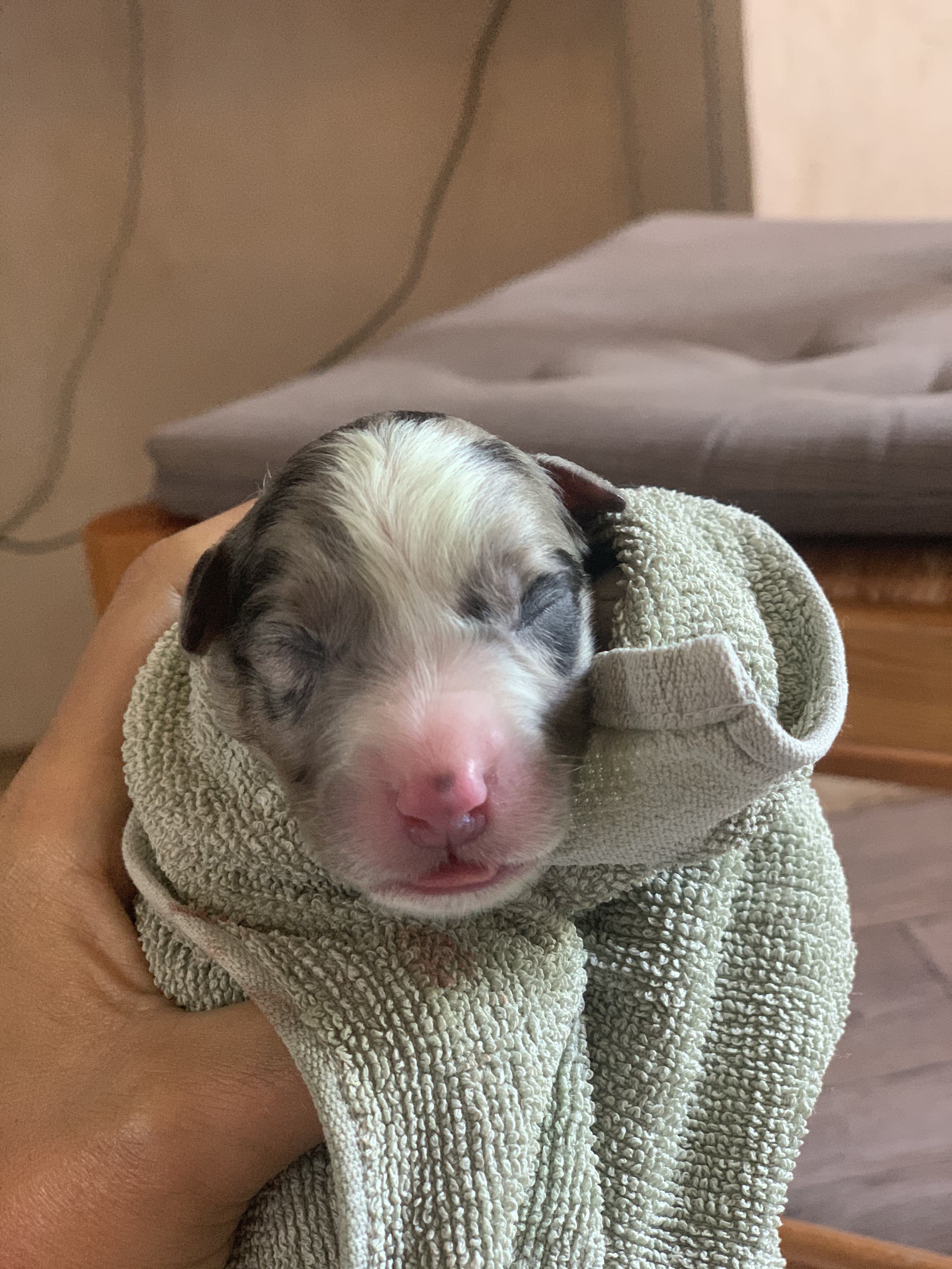 Les chiots de Irwen & Wesley sont nés le 03 Aout dans l’après-midi entre 14h et 20h. Des poids tout à fait convenables, entre 350 et 400g. De beaux bébés tous ronds ❤